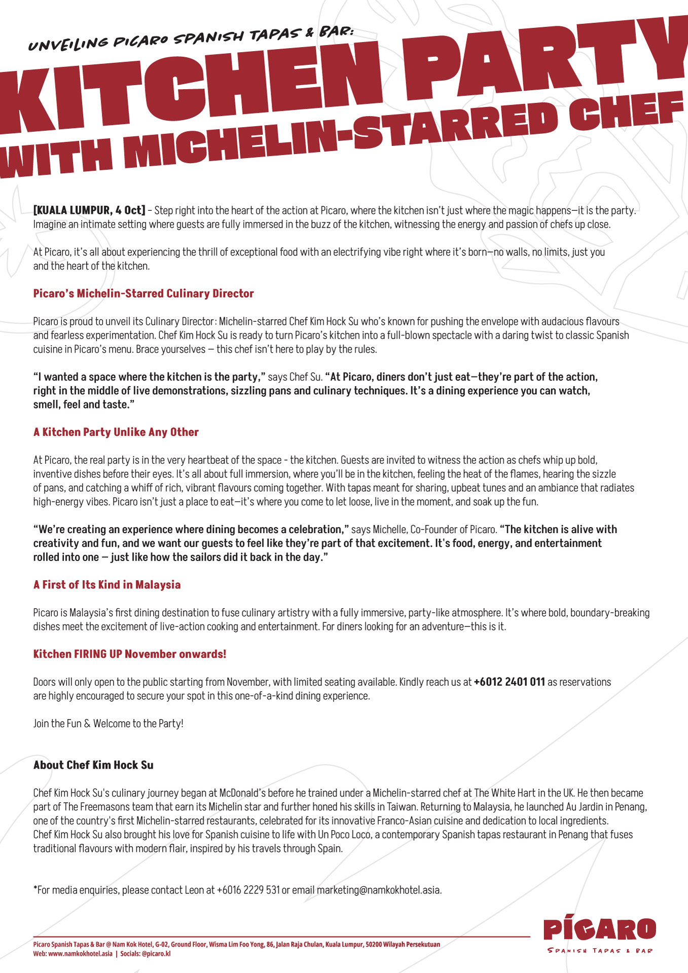 [KUALA LUMPUR, 4 Oct] – Prepare for a culinary revolution as Picaro bursts onto the [...]